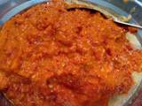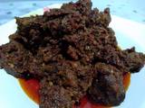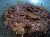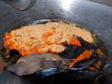 2. Panaskan minyak, tumis bumbu halus, masukkan daun salam dan daun jeruk. Aduk hingga matang, masukkan daging. Aduk kembali, masukkan santan.