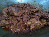3. Aduk perlahan sampai mendidih. Masukkan garam, gula pasir dan kaldu jamur. Tunggu hingga menyusut, dan sesekali diaduk supaya tidak lengket dasarnya. Saya 2 jam memasaknya. Sesuai selera ya, ada yang suka kering sama sekali, ada yang masi ada kuah sedikitnya. Saya bikin kering. Tinggal minyaknya.